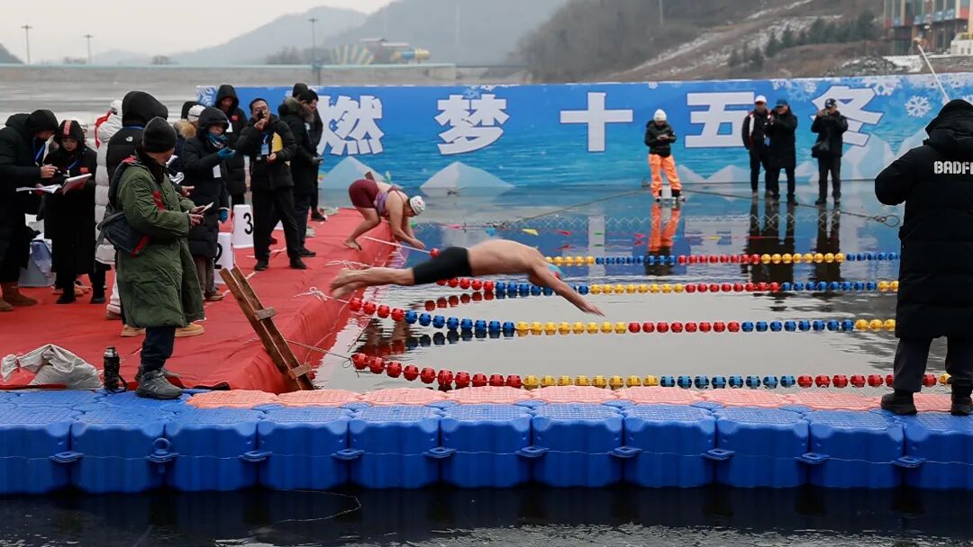 2025年12月6日辽宁本溪东风湖度假村,来自于辽宁省十四个市及沈抚新区共15个代表队的数百冬泳健儿打破宁静的冰面,在此参加本溪泳协承办的辽宁省第十八届全民冬泳比赛,项目设置50米 蝶仰蛙自及男女2+2混合接力。