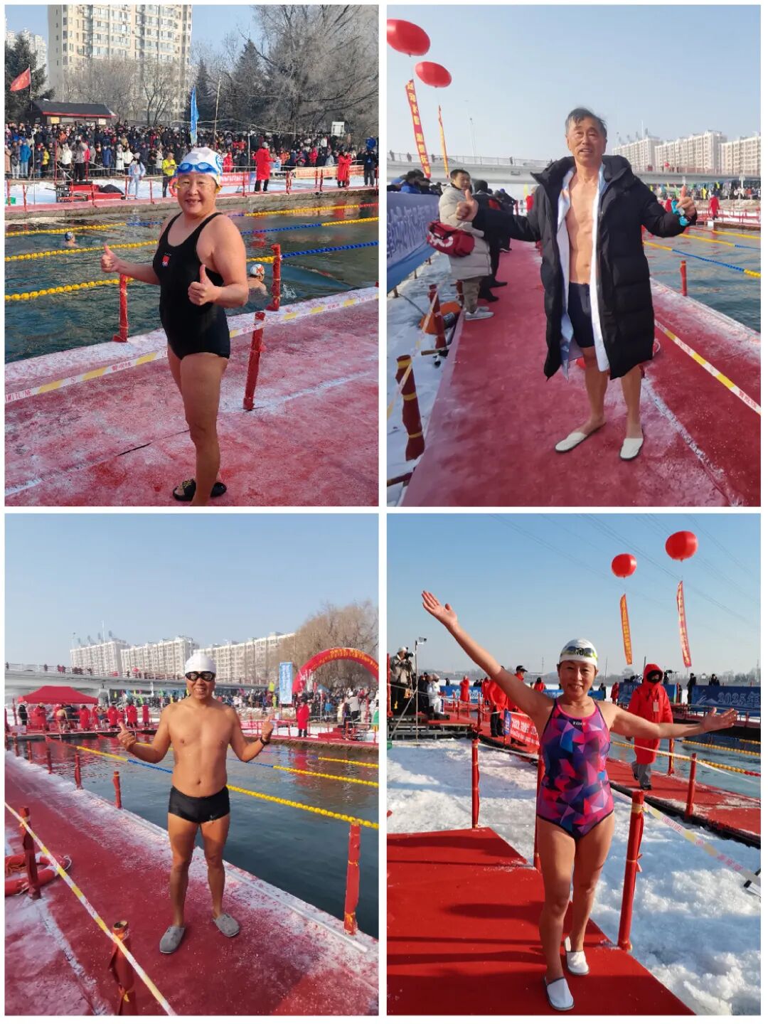 2025.12.14 抚顺“雷锋城杯”冬泳公开赛在浑河长春桥冬泳基地举办,参赛人员按男女年龄分甲乙丙三组,比赛项目分男女 25米 50米 蛙泳/蝶泳 /自由泳 及4x25米男女混合接力,来自全国各地的冬泳协会及俱乐部,还有来自俄罗斯的冬泳运动员,总共四百多人参加了这次激情四射的竞赛活动。